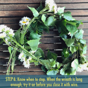 Know when to stop! Eventually, you’ll have a long wreath ready to fold. Try the wreath before you close it to make sure it’s the right size.